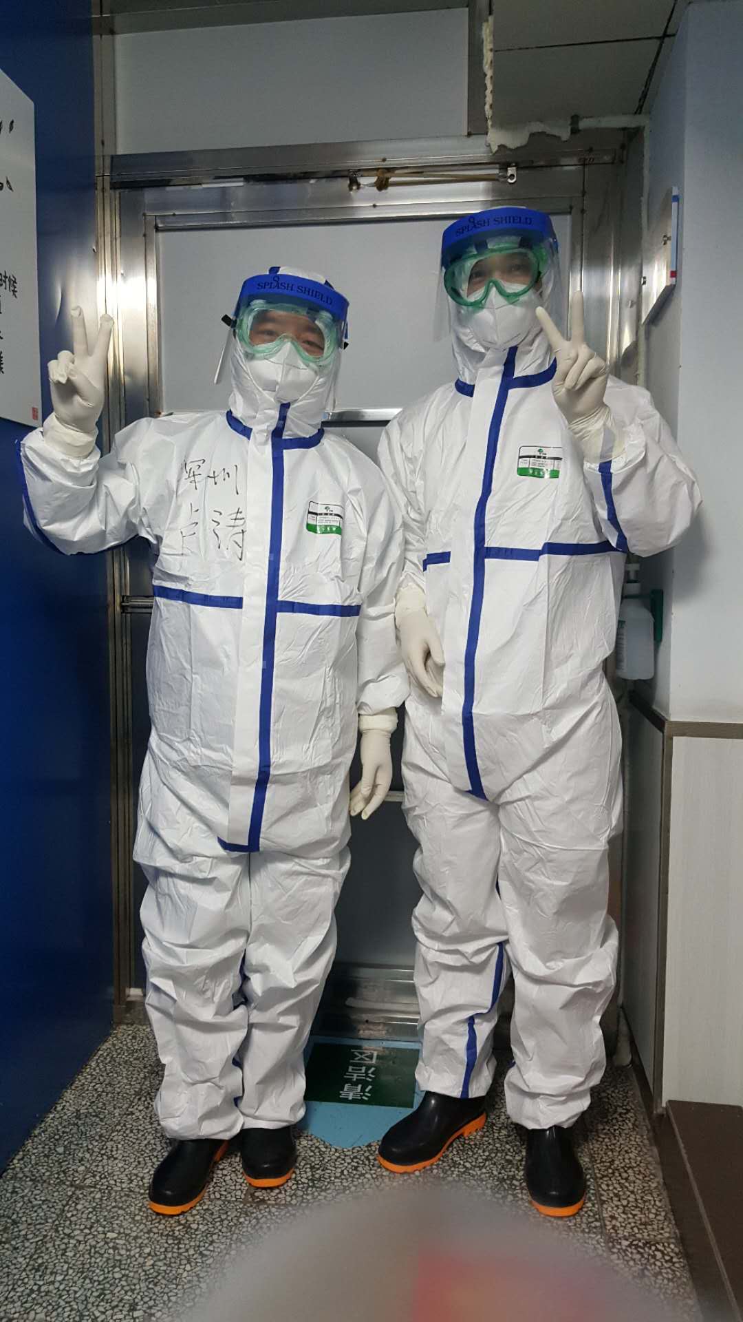 一切穿戴妥當(dāng),請(qǐng)護(hù)士長(zhǎng)拍個(gè)照,留下了最珍貴最勇敢的照片。深吸一口氣,推門(mén)……我和我的隊(duì)員們一樣,沖上了最前沿!