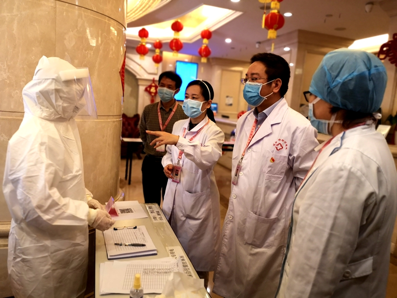 從接到任務(wù)到第一批人員入住,僅有41小時(shí)。接到緊急任務(wù),福田區(qū)婦幼保健院院長(zhǎng)張燁、副院長(zhǎng)李志勇立即召集醫(yī)教科、護(hù)理部、院辦、院感等各部門,開(kāi)始部署工作,聯(lián)合福田街道黨政辦負(fù)責(zé)人王衛(wèi)初到酒店考察,規(guī)劃合理布局、商議物質(zhì)保障渠道。并從樓層分布、工作人員與入住人員的合理分區(qū)、收住流程到消殺內(nèi)容、醫(yī)療垃圾的定點(diǎn)位置、大批量觀察人員的就餐問(wèn)題等都一一落實(shí)解決。