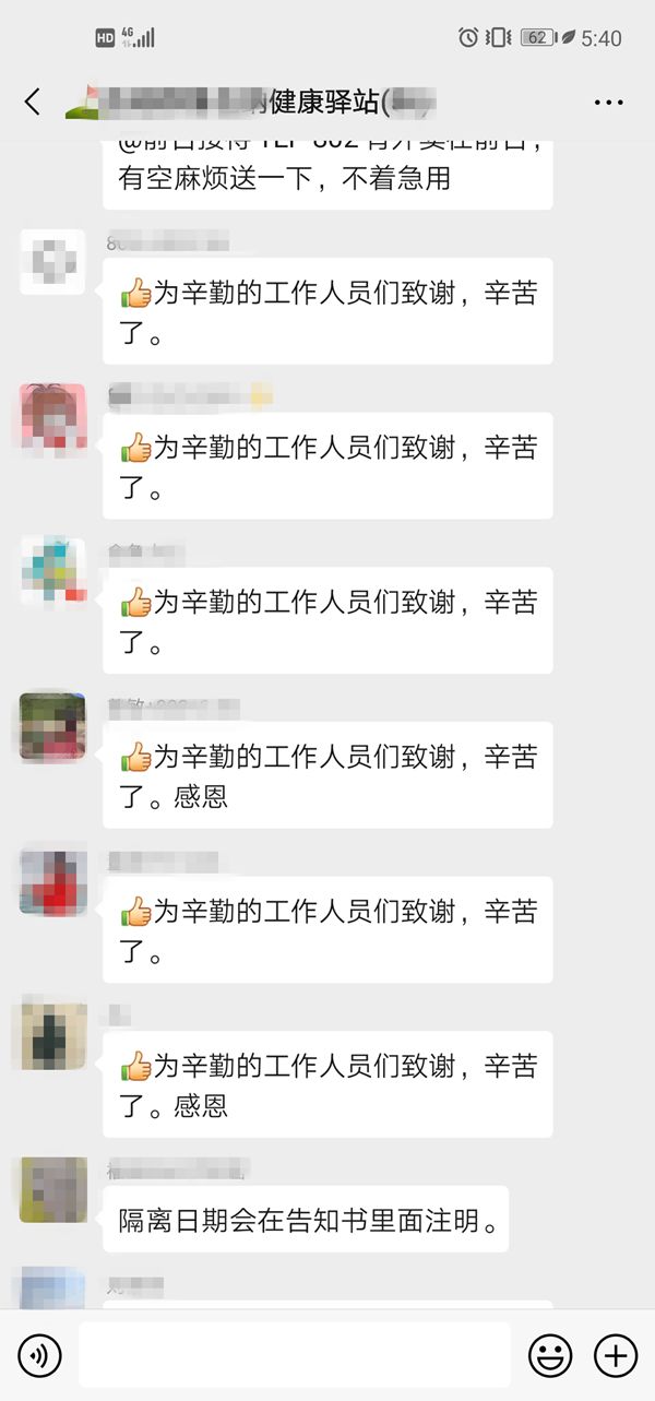 健康驛站微信群截圖。