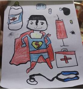 見圳客戶端·深圳新聞網(wǎng)訊(記者 曹文麗 通訊員 王霏 楊睿)有這么一幅畫,中間畫著一位“小超人”,“小超人”周圍畫著聽診器、注射器等醫(yī)療器械,充滿童趣,在抗疫期間,這幅畫也給人們正能量。而這幅畫的作者,是一個(gè)6歲的孩童。他畫完后認(rèn)真地說:“這個(gè)病毒太壞了,我長大后要當(dāng)醫(yī)生,當(dāng)超人,要用聽診器、注射器,把這些病毒全殺死!”稚嫩的聲音里充滿了對醫(yī)生這個(gè)職業(yè)的向往,因?yàn)樗δ咳靖改腹ぷ鲿r(shí)的忘我,因?yàn)樗母改甘且粚?zhàn)斗在抗疫一線的醫(yī)務(wù)工作者。