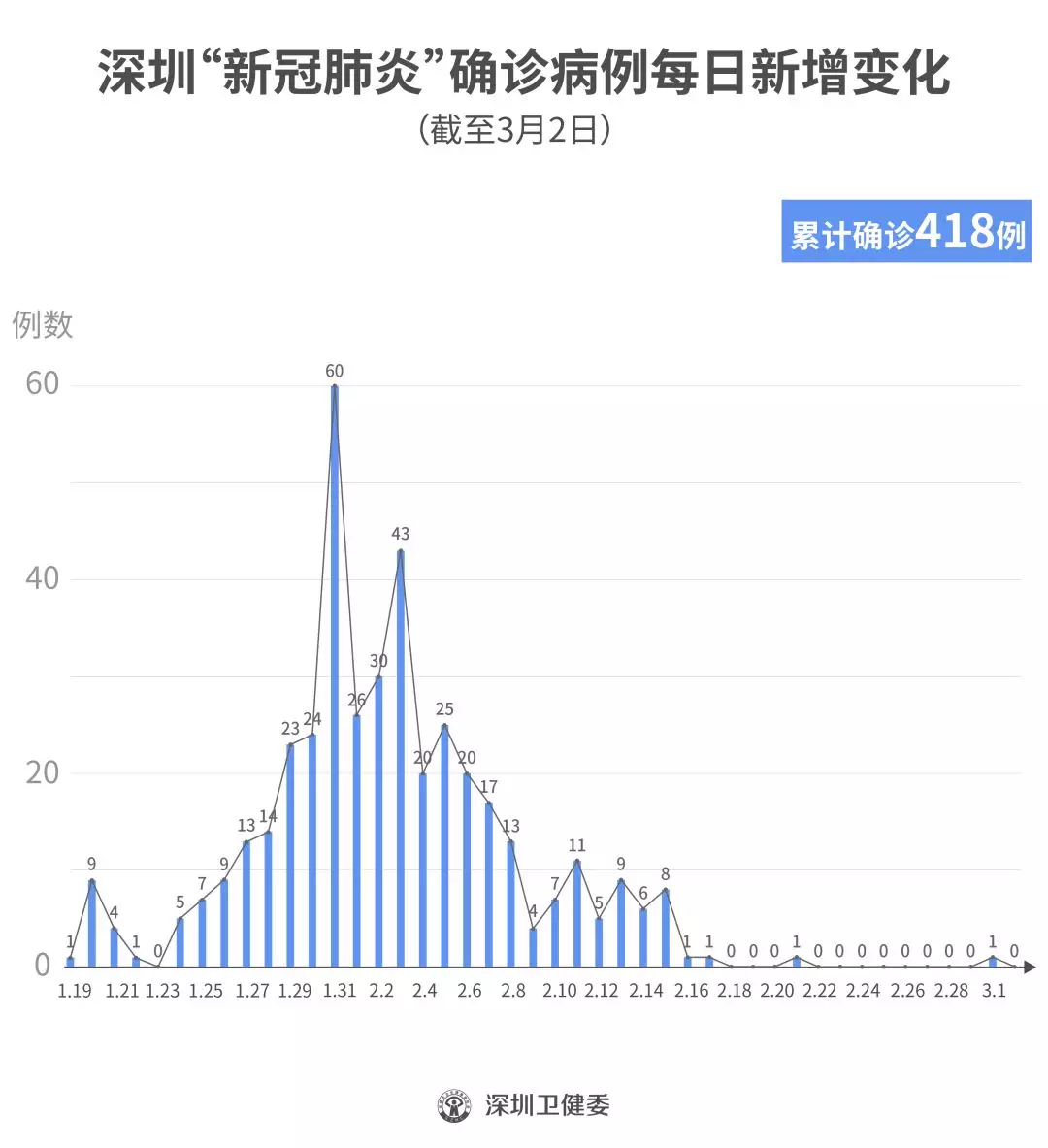 見圳客戶端·深圳新聞網(wǎng)2020年3月3日訊 截至3月2日24時(shí),深圳累計(jì)報(bào)告“新冠肺炎”確診病例418例。3月2日當(dāng)天全市無新增確診病例,當(dāng)天出院病例12例(從2月26日起不再公布出院個(gè)案)。