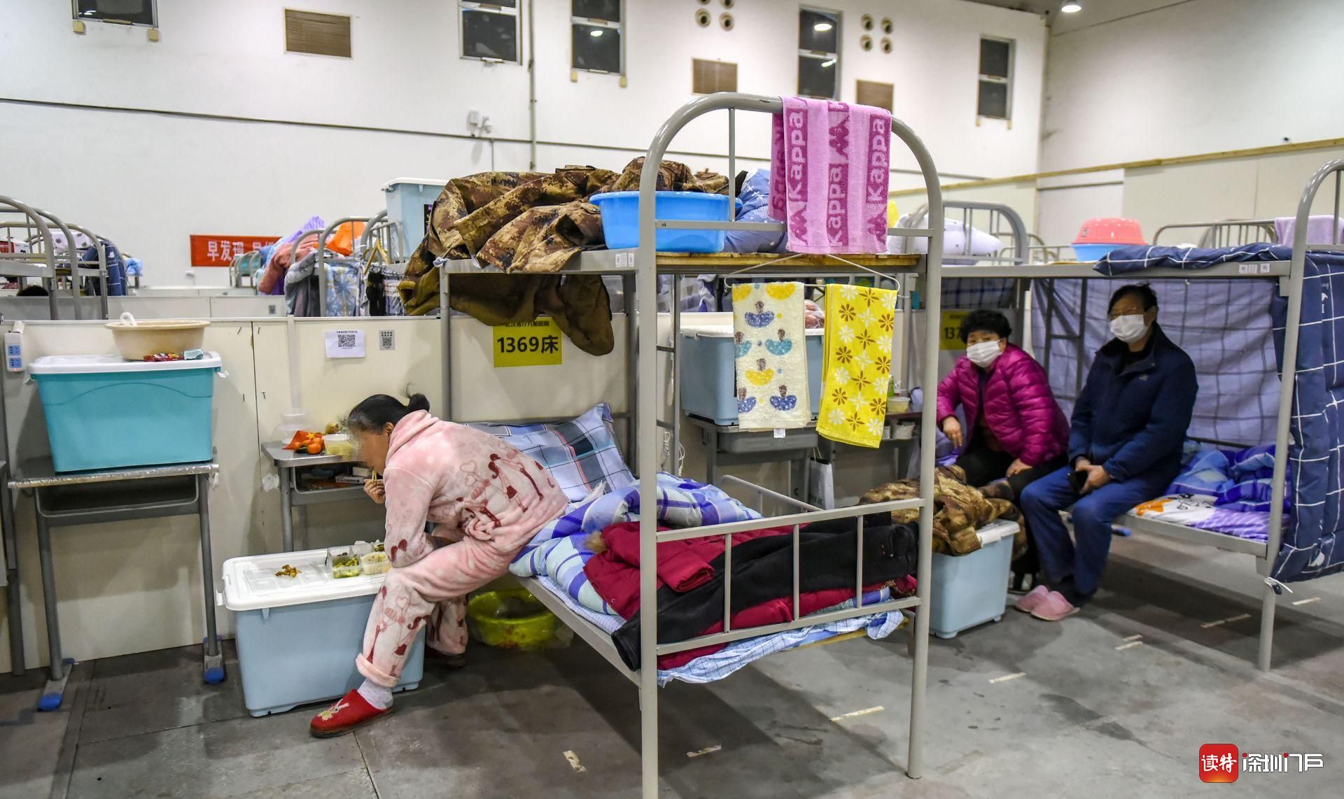 經(jīng)過社區(qū)人員一再勸說,2月9日下午,李玲和大姐、三妹以及病友們被集中送到客廳方艙醫(yī)院C區(qū),大姐夫、弟弟被送至重癥室。此時,方艙醫(yī)院AB區(qū)已經(jīng)入住近千名隔離病人。“和我們一起進入方艙醫(yī)院的人有200多,一起涌入方艙,我們懷著忐忑、彷徨的心情入住了方艙?!崩盍徇@樣描述當時的場景:一人一個儲物柜,一個小桌子,一張上下鋪床,床上新鋪了被褥,還有電熱毯,以及一應(yīng)洗漱用品和迷彩棉衣,看著這一應(yīng)物資,心里稍安。
