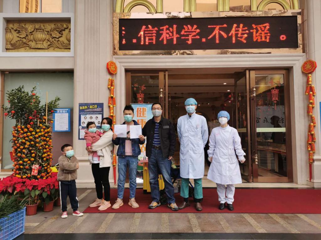 ▲2月10日,健康驛站第一家醫(yī)學觀察家庭離站時的合影。呂志軍供圖