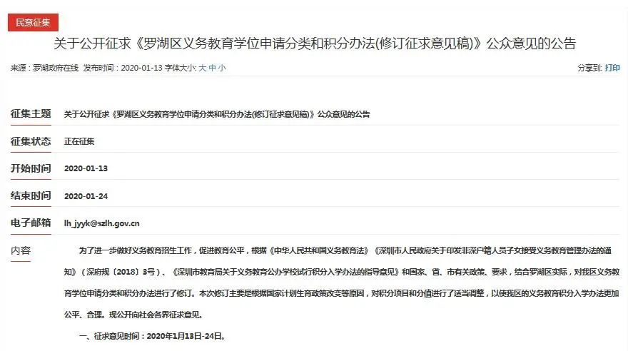 羅湖區(qū)在1月13日發(fā)布了《羅湖區(qū)義務教育學位申請分類和積分辦法(修訂征求意見稿)》向市民征求意見。