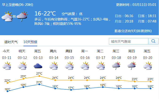 見圳客戶端·深圳新聞網(wǎng)2020年3月11日訊 據(jù)市氣象臺(tái)消息,今日深圳多云,午后有分散陣雨;氣溫16-22℃;東風(fēng)3-4級(jí),陣風(fēng)6-7級(jí);相對(duì)濕度55%-95%。