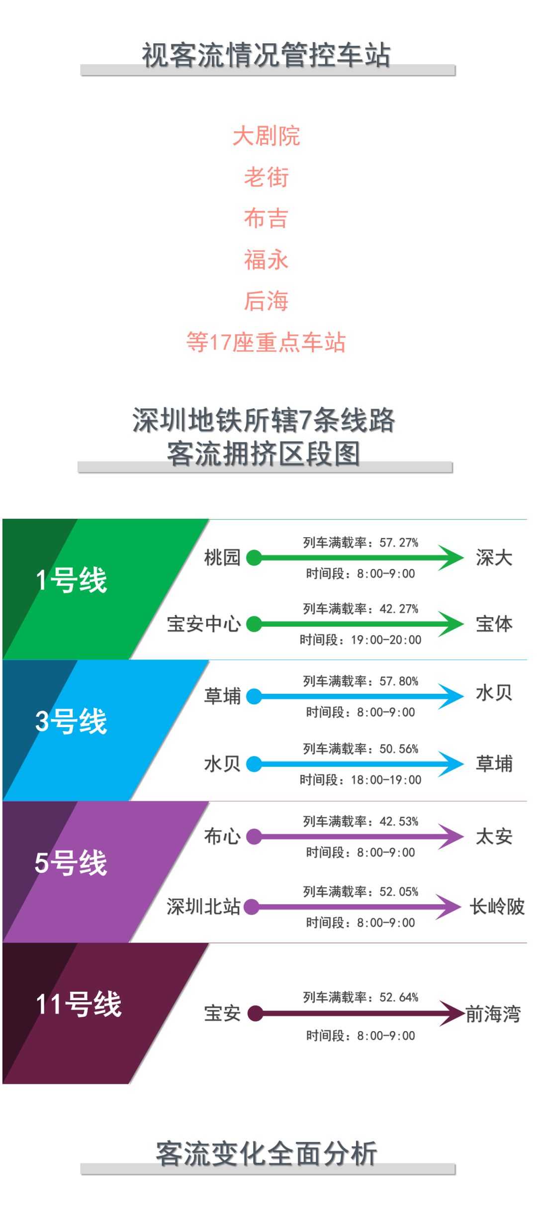 3月10日(周二),深圳地鐵所轄7條線路客流量已達219萬人次,為防止客流激增而造成乘客過度擁擠,深圳地鐵已在11座大客流站點,實行常態(tài)化客流管控。另外有17座重點車站,也將視客流情況隨時采取客流管控措施。
