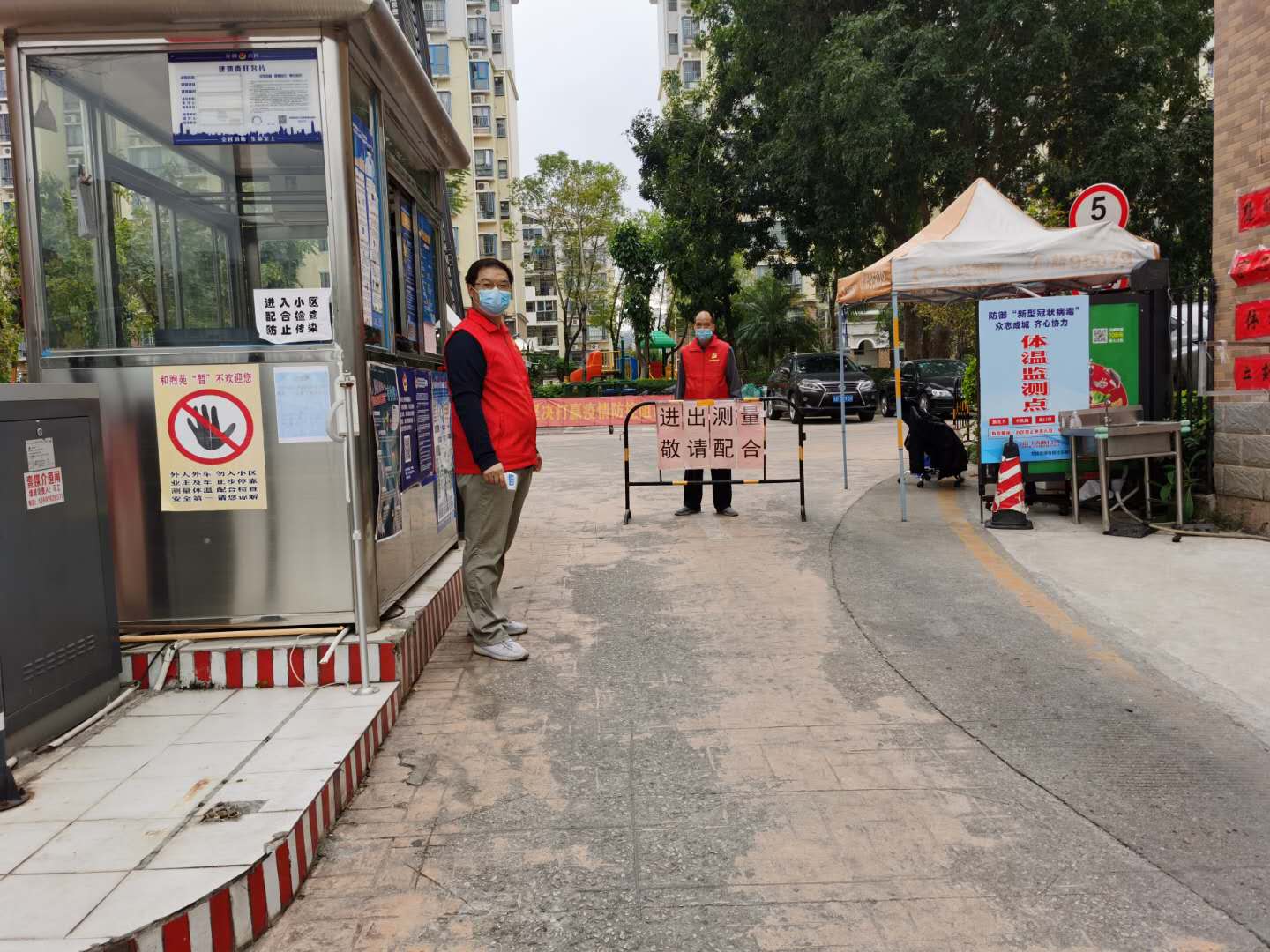 蔡速達(dá)、蔡榮釗父子在小區(qū)出入口執(zhí)勤