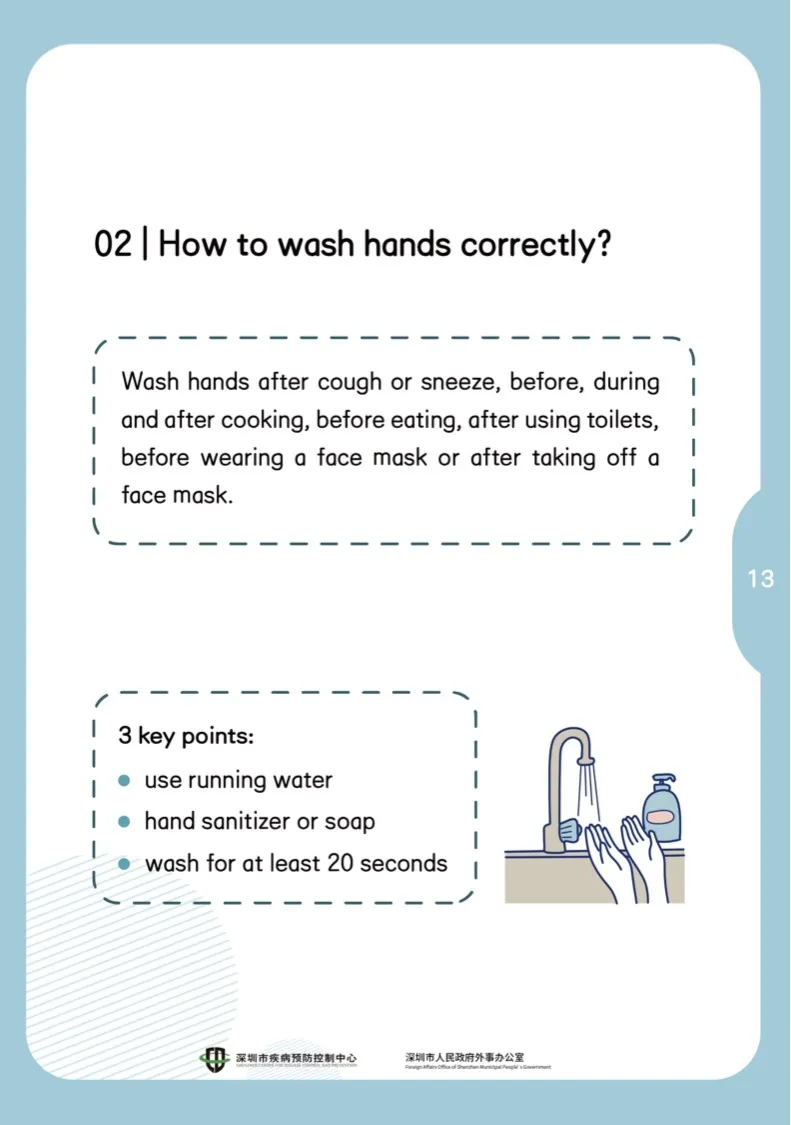 咳嗽或打噴嚏后,準(zhǔn)備食物前、中、后,餐前便后,戴口罩前和摘口罩后,都要記得洗手。三個(gè)關(guān)鍵點(diǎn):流動(dòng)的水,使用洗手液或肥皂,洗夠20秒。