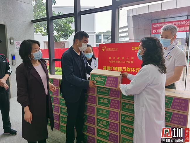 為了向這些最美的逆行者致敬,市關(guān)愛辦攜手愛心企業(yè)青海藏蜜公司與深圳市康輝旅行社,看望慰問一線的醫(yī)務(wù)工作人員。青海藏蜜公司向一線醫(yī)護人員捐贈1500盒青藏高原野花蜜,總價值6.3萬元。深圳藏蜜營銷管理有限公司總經(jīng)理王大鳴動情地說,抗擊疫情是一場沒有硝煙的戰(zhàn)役,牽系著所有人的心,因為醫(yī)護人員的日夜守護與付出,大家才能安心復(fù)工,照常生活。希望醫(yī)護人員能在勞累之余,泡上一杯蜂蜜水,增強抵抗力,緩解心里壓力,更好地續(xù)航戰(zhàn)斗。