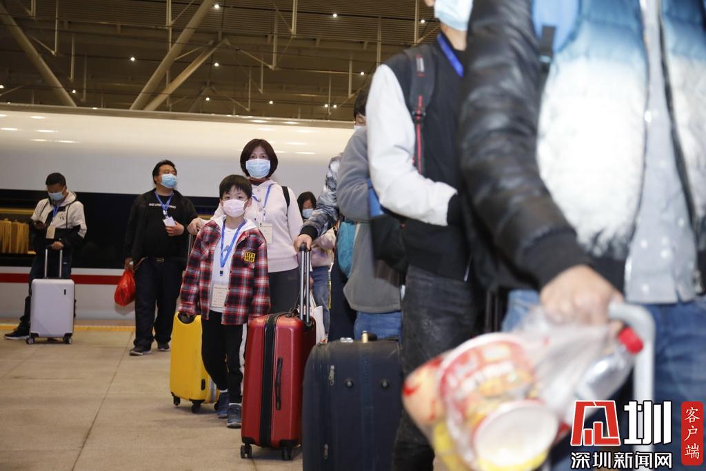 深圳北站客運車間黨總支書記龔建力告訴記者,為了確保湖北返深專列安全??空九_,深圳北站提前加強了清潔工作,并增派相關(guān)工作人員,確保返深湖北籍乘客有序安全出站。