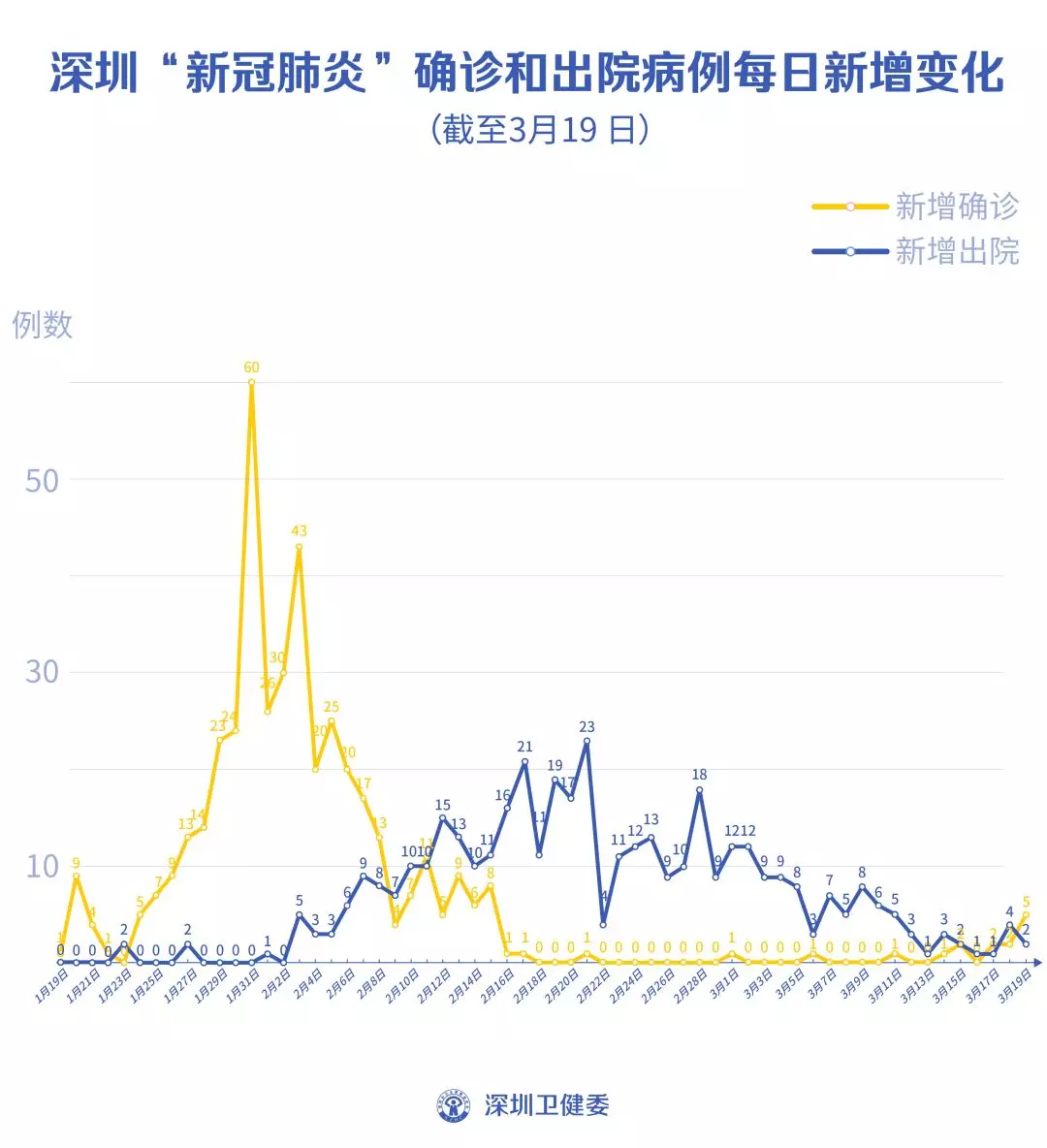 截至3月19日24時(shí),深圳累計(jì)報(bào)告“新冠肺炎”病例432例。3月19日當(dāng)天新增5例,出院2例。