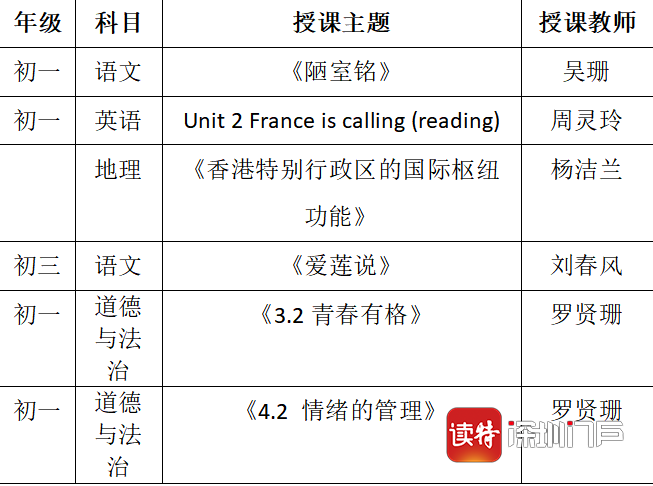 深圳實(shí)驗(yàn)學(xué)校中學(xué)部課程表