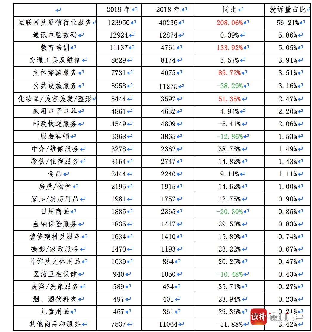 原標題:2019年全年消費投訴超22萬宗 互聯網及通信行業(yè)服務投訴量增幅超2倍