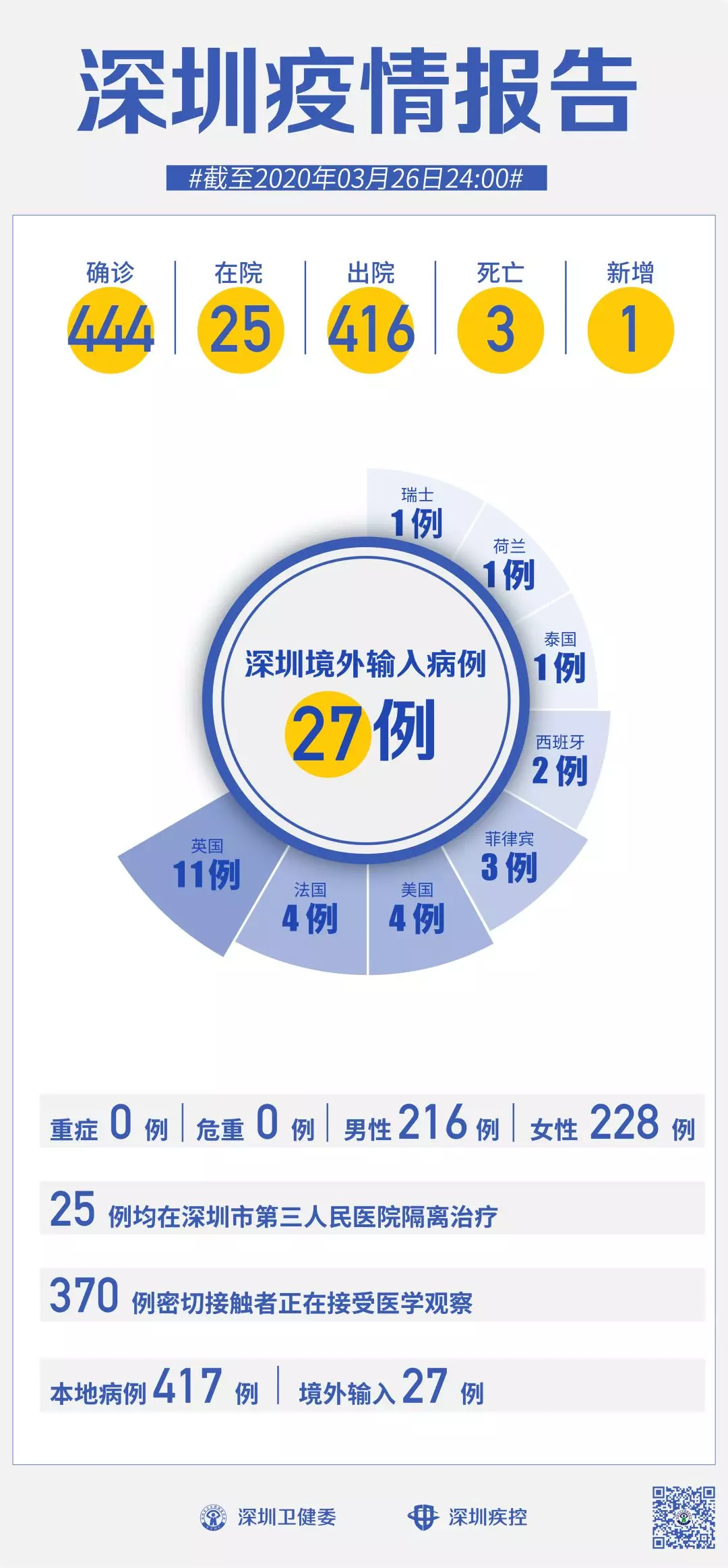 3月26日,深圳確診1例境外輸入“新冠肺炎”新病例,累計達27例。