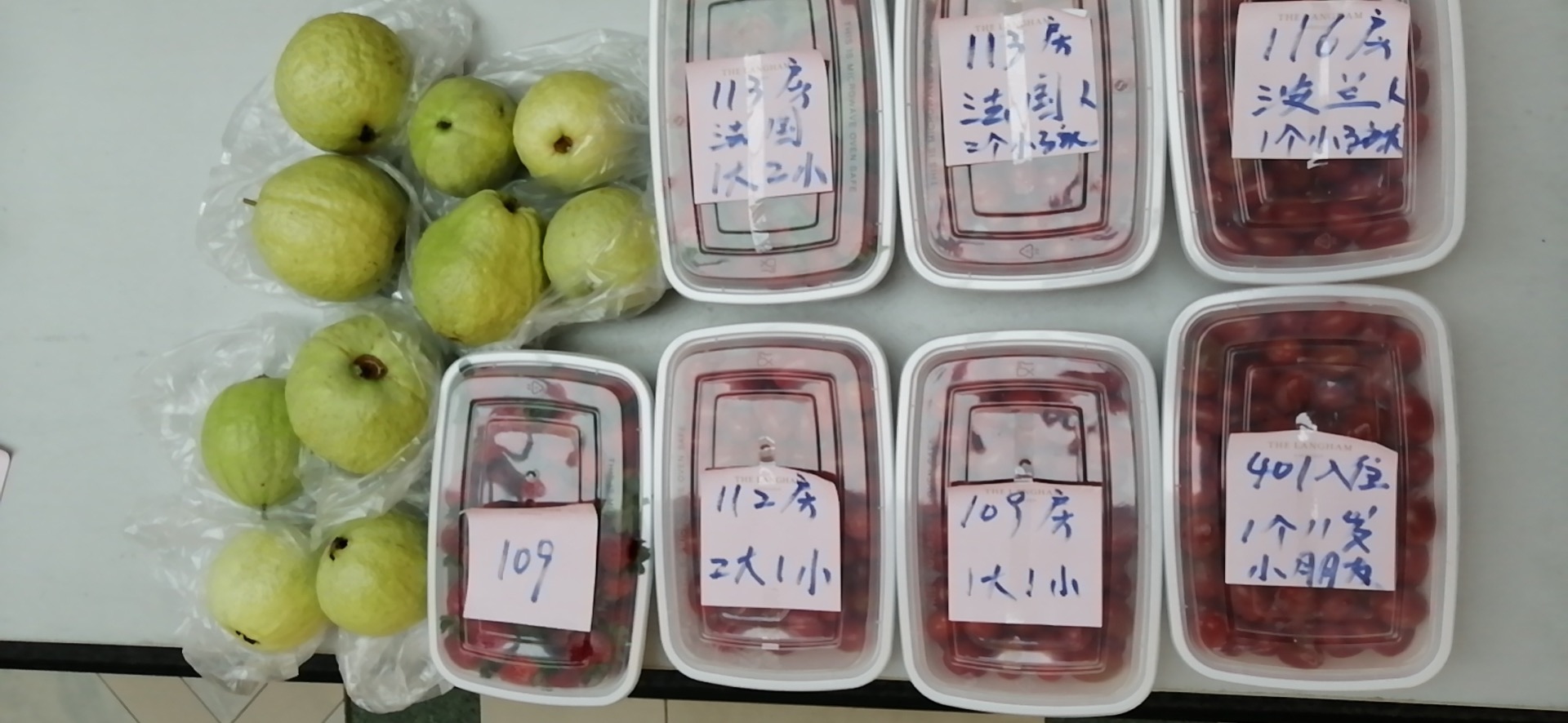 一是酒店提升服務(wù)品質(zhì)。增加后廚員工數(shù)量,采購保溫箱,保證隔離人員熱菜熱飯。自發(fā)將自產(chǎn)草莓等水果提供給隔離人員食用,獲得隔離人員點贊。隔離點運行以來,酒店累計配發(fā)自產(chǎn)草莓、青棗、小番茄、番石榴800余份。
