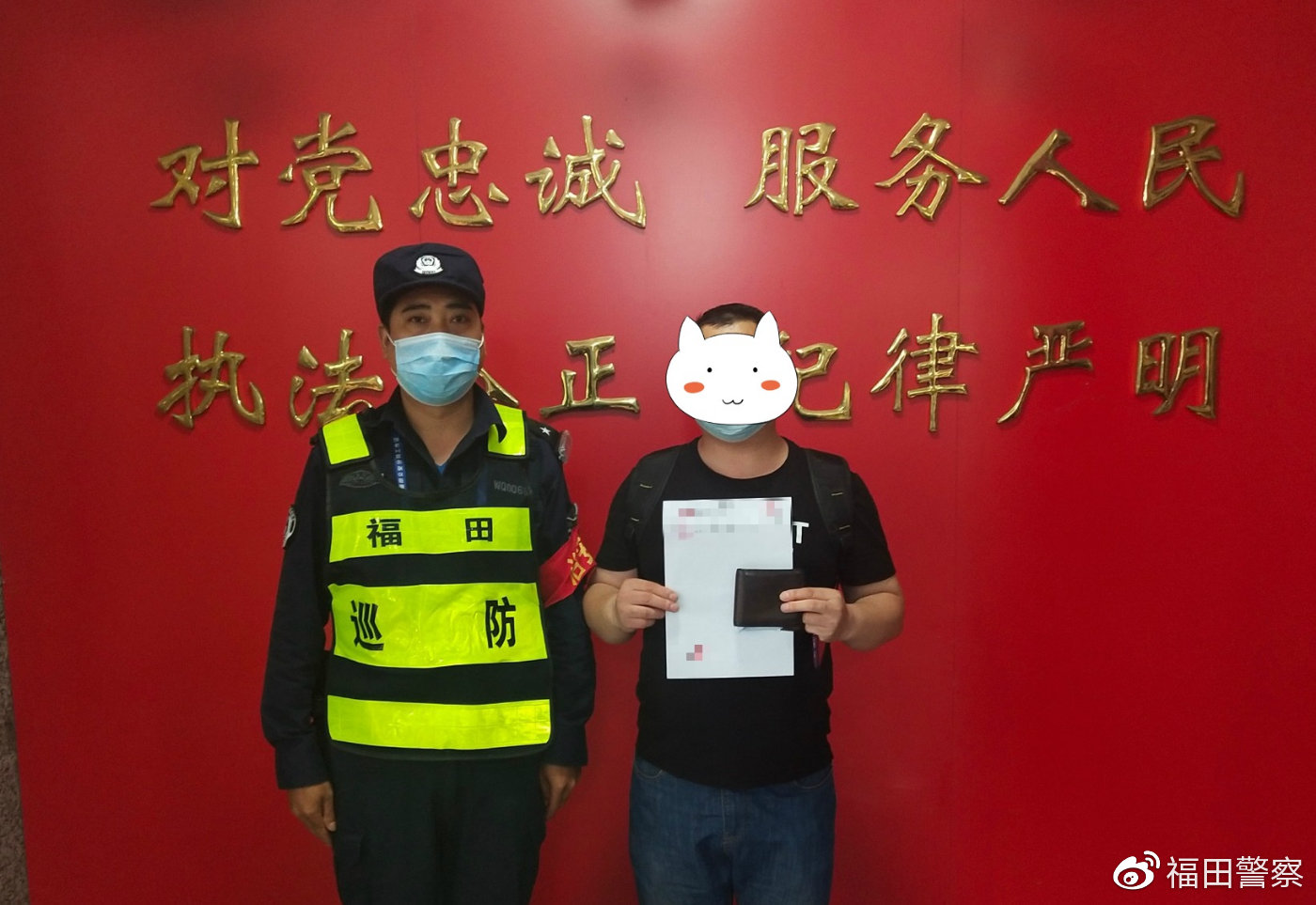 4月5日上午,深圳市公安局福田分局南園派出所隊(duì)員段忠孝在回所交接班路途中,在地上發(fā)現(xiàn)一個(gè)遺落的錢包,打開仔細(xì)一看,內(nèi)有銀行卡、社??ā⑸矸葑C、現(xiàn)金410元人民幣等物品,還有一張外出務(wù)工人員健康證明。