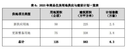 從商品住房用地安排來看,2020年度計(jì)劃安排商品住房用地供應(yīng)125公頃,包括新供應(yīng)用地50公頃,更新整備用地75公頃。同時,計(jì)劃共計(jì)擬建設(shè)擬建設(shè)商品住房6.3萬套、建筑面積563萬平方米。其中新供應(yīng)用地?cái)M建設(shè)2.5萬套、建筑面積約225萬平方米;更新整備用地?cái)M建設(shè)3.8萬套、建筑面積約338萬平方米。