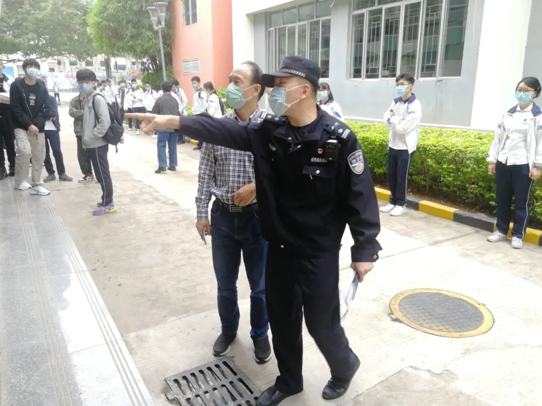 “學(xué)校大門是校園疫情防控的第一道防線,把好校園第一道關(guān)卡至關(guān)重要,采取全封閉管理,對外來人員嚴(yán)格詢問登記,逢車必檢、逢人必查,在上學(xué)放學(xué)高峰時段確保校門口安保力量,將風(fēng)險隱患攔截在校門外?!?月21日,在福田區(qū)云頂學(xué)校排查安全隱患時,福強(qiáng)派出所社區(qū)民警程印對該校安全負(fù)責(zé)人特別強(qiáng)調(diào)。據(jù)了解,截至4月25日,福田公安分局對轄區(qū)44所中學(xué)開展了檢查,發(fā)現(xiàn)并整改問題隱患17處。