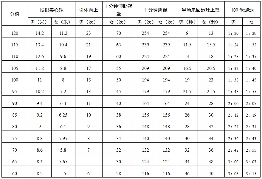 (一)考試項目庫:200米跑、中長跑(女生800米和男生1000米)、立定跳遠、一分鐘仰臥起坐(女生)、引體向上(男生)、投擲實心球、一分鐘跳繩、籃球半場來回運球上籃、100米游泳(不限泳姿)。