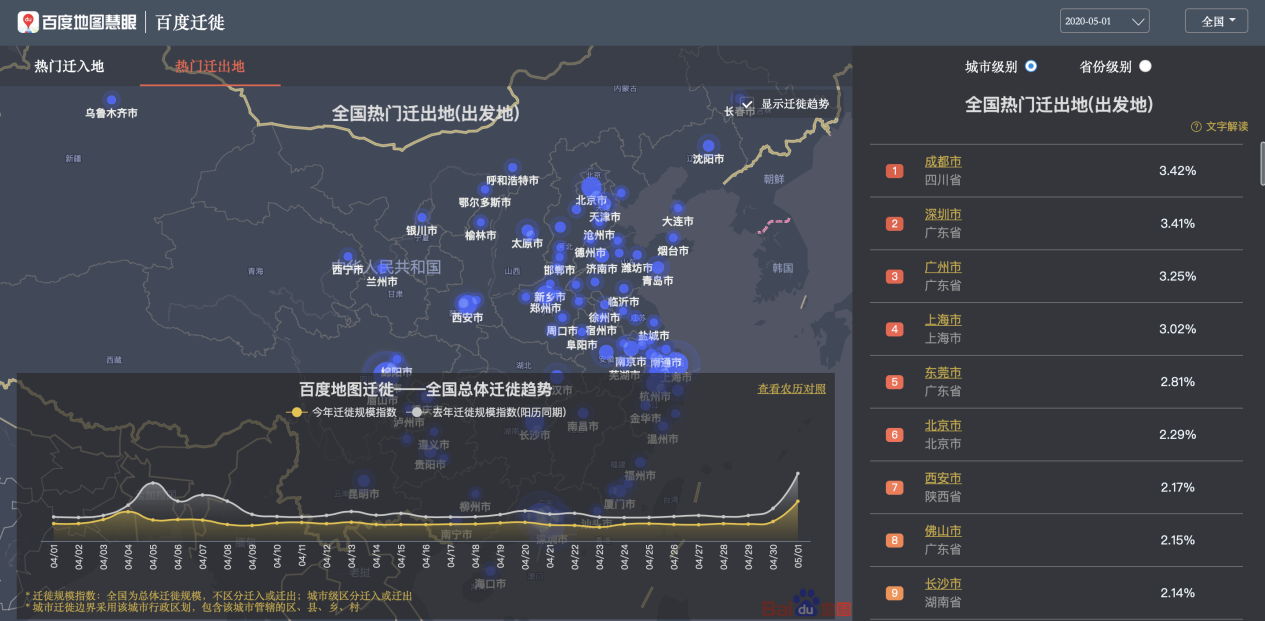百度地圖遷徙大數(shù)據(jù)平臺(tái)-全國(guó)熱門(mén)遷出地