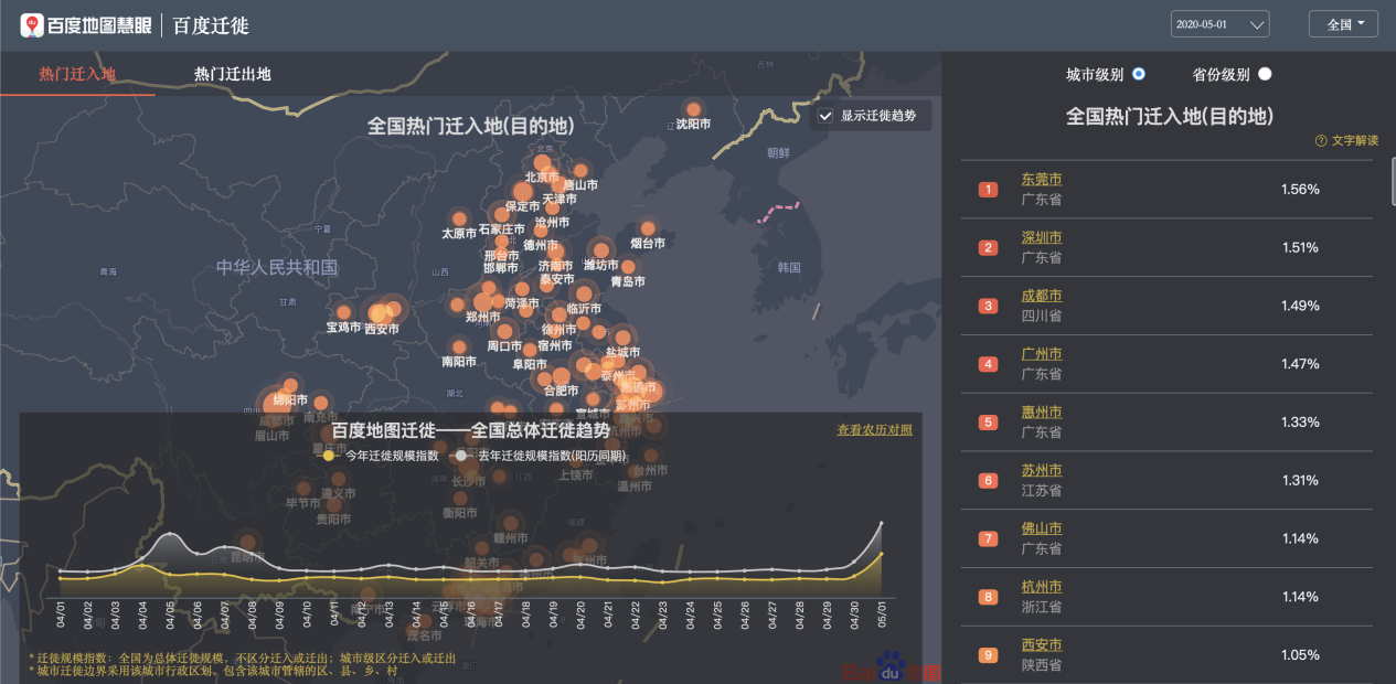 百度地圖遷徙大數(shù)據(jù)平臺(tái)-全國(guó)熱門(mén)遷入地