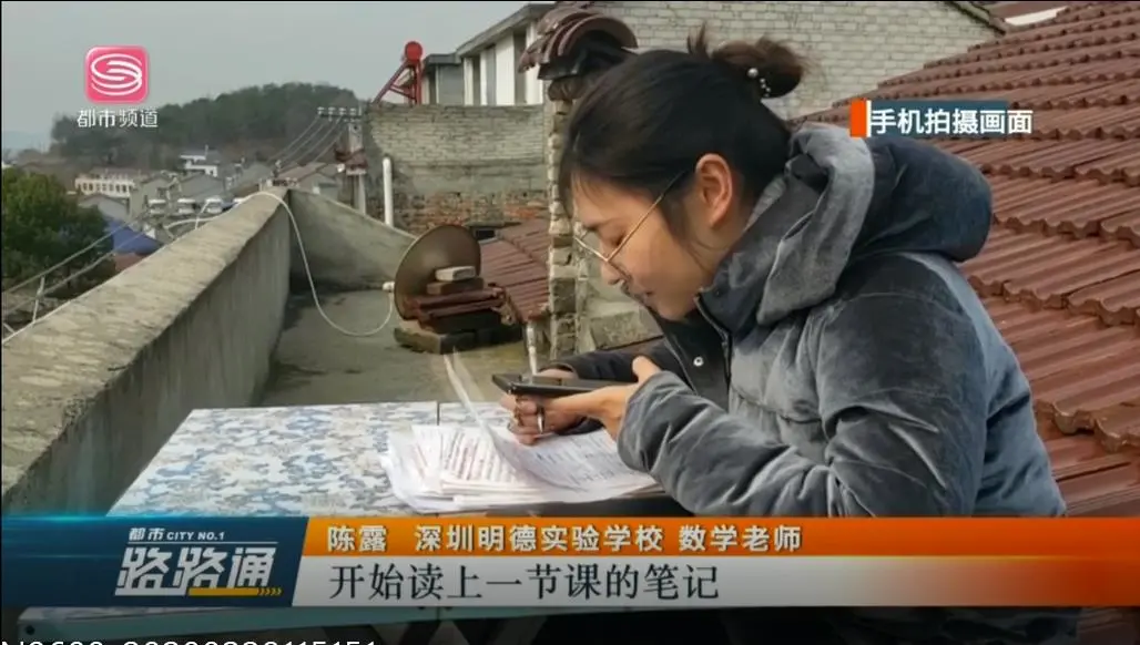深圳中小學(xué)網(wǎng)課開課以來,廣大青年教師克服種種不利條件,變身教育主播,讓知識穿越屏幕直達(dá)學(xué)生心靈,深圳明德實(shí)驗(yàn)學(xué)校的陳露老師就是其中一位典型代表。她因疫情滯留于湖北農(nóng)村,由于信號差,一開始為了錄制微課,白天她就帶好口罩跑到雜草叢生的山頂找信號,一塊木頭當(dāng)?shù)首?,坐下慢慢等上傳視頻,頂著寒風(fēng)一坐就是半天。線上教學(xué)正式開課后,由于設(shè)備和信號問題,陳老師只能采用QQ直播的方式給學(xué)生上課,為了保障語音效果,她把課堂搬到信號稍強(qiáng)的屋頂。上屋頂不是件容易的事,陳老師必須先爬一個陡峭的梯子,再匍匐穿過一個孔洞才能到達(dá)。一個天臺、一張折疊桌成了她的“三尺講臺”,一疊信紙成了她的“黑板”,一部手機(jī)成了她的“多媒體”。陳露老師每天坐在樓頂?shù)暮焙惋L(fēng)雪中,堅(jiān)持完成直播課,保證學(xué)生正常的線上學(xué)習(xí)。