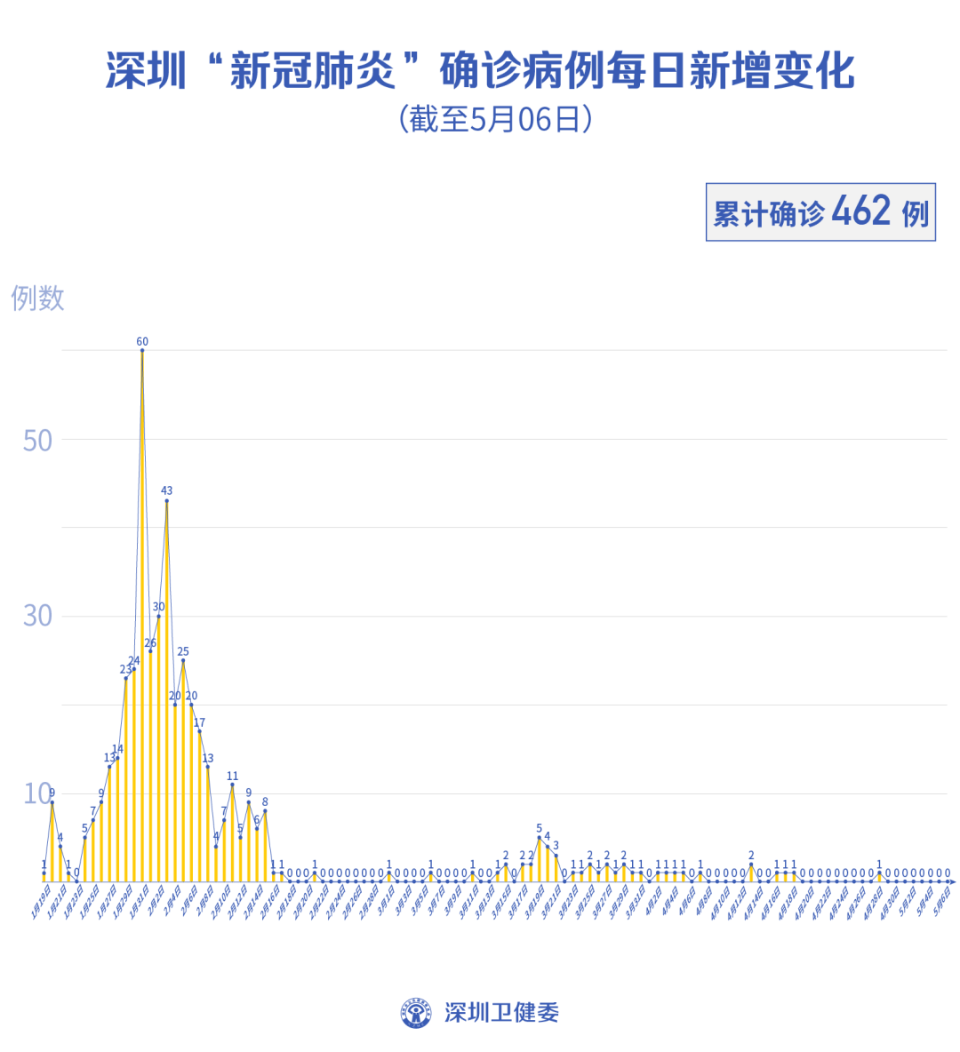 截至5月6日24時(shí),深圳累計(jì)報(bào)告新冠肺炎病例462例。在院治療僅有1例。