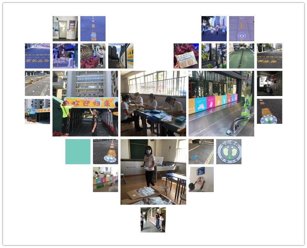 學校將教學區(qū)劃分為“綠黃藍”三區(qū),并精心設(shè)計了帶有濱海元素的“三色”入校通道、三色盾牌、三色貼紙等!