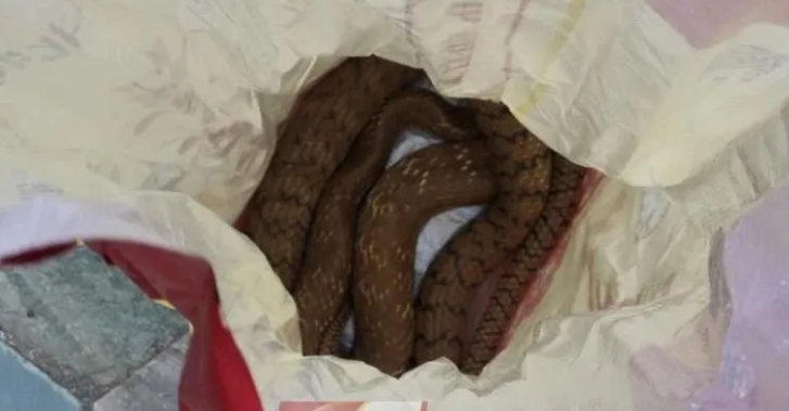 最近,兩條體型碩大的蛇突然在蓮花山公園人行道旁邊的草叢出沒,隨后,一名公園內(nèi)的保安人員徒手捕捉了兩條蛇。