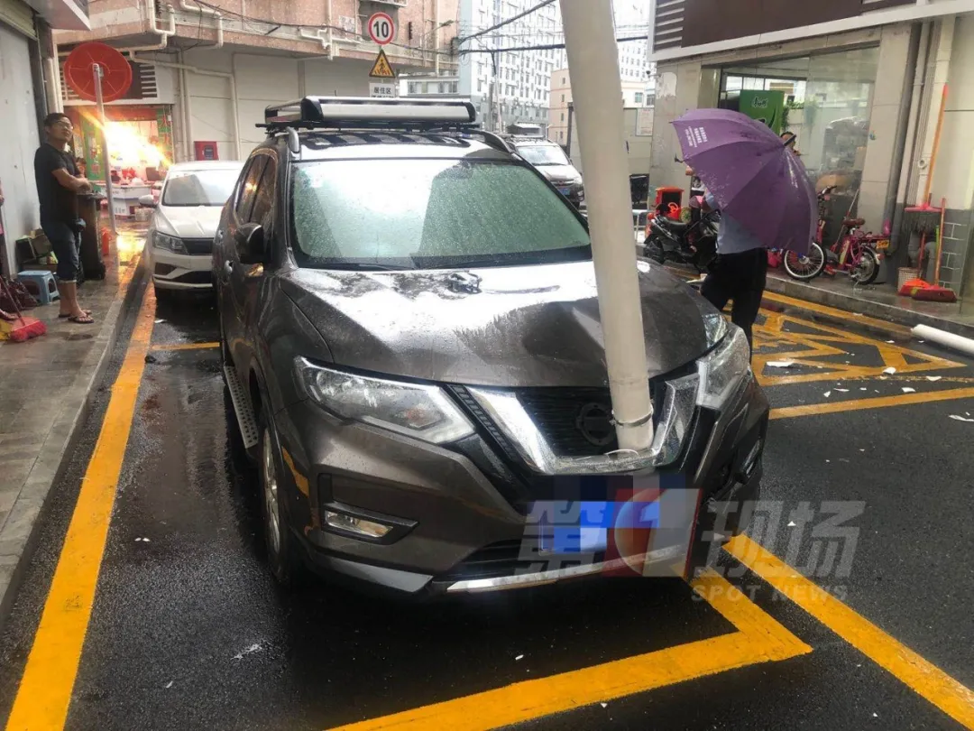 原標(biāo)題:10米雨水管從天而降,直插小車(chē)“頭部”,還有床墊、儲(chǔ)水箱...