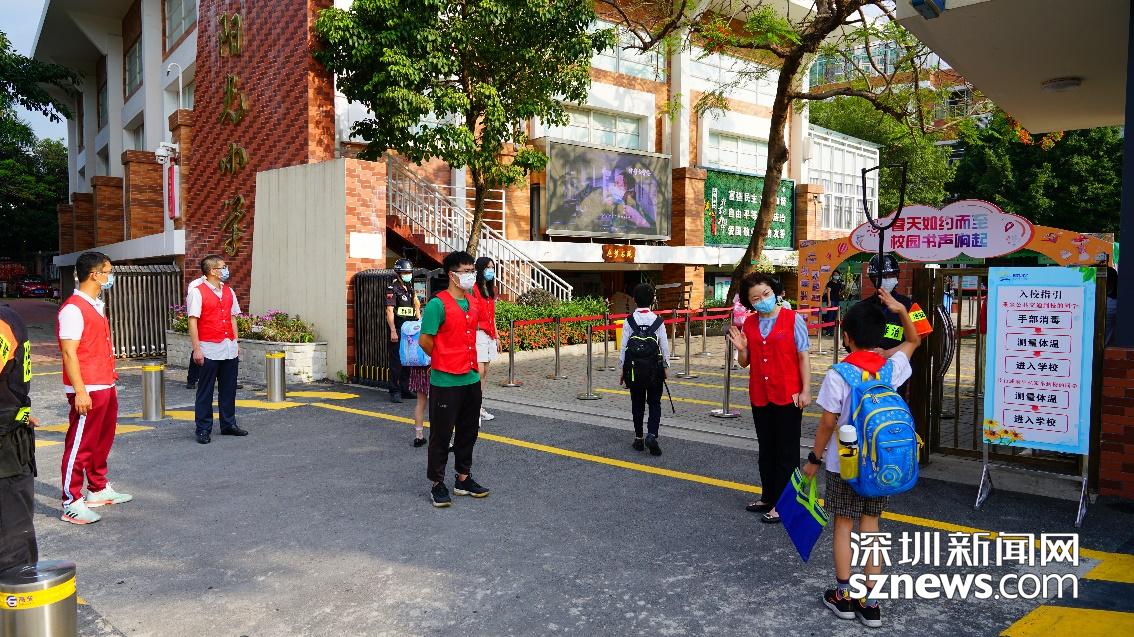 見圳客戶端·深圳新聞網(wǎng)5月12日訊 (記者 曹園芳 通訊員 徐杰 呂萍 李佳英 )5月11日早晨7:00,陽光小學校長高鵬、健康副校長簡聰主任、校醫(yī)羅醫(yī)生、值日教師、黨員先鋒崗教師等已提前到校并做好各項準備工作,7:20校門開啟,孩子們相隔一米排隊等候,在完成了人臉識別校對信息、熱成像儀實時測溫、自動洗手消毒清潔后進入校園,整個過程井然有序、快速高效。他們燦爛的笑容、禮貌的問候,讓沉寂已久的陽光校園再次煥發(fā)活力與生機。