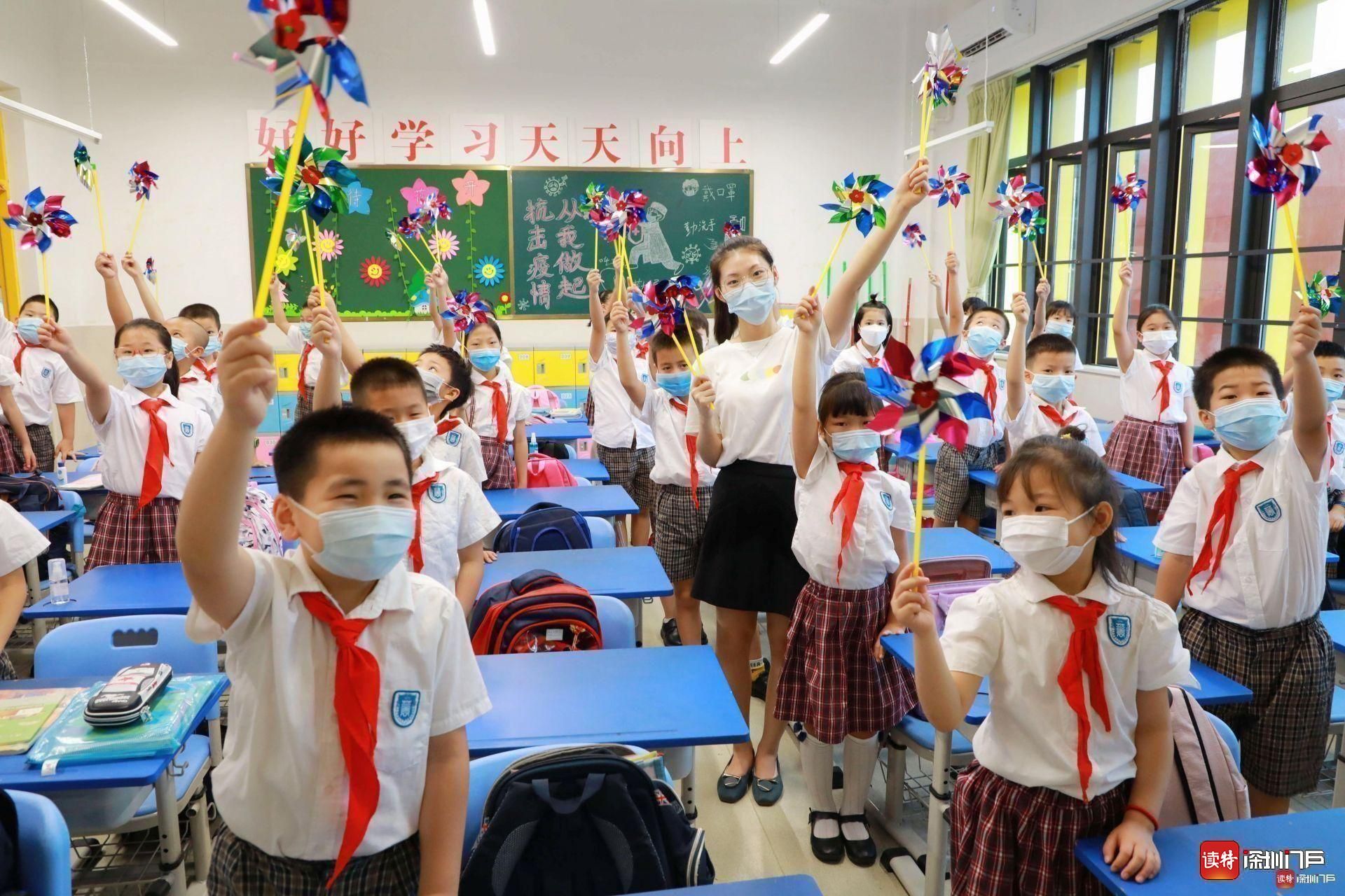 華附龍園學校:“大風車吱呀吱喲喲地轉,這里的風景呀真好看,天好看,地好看,還有一起快樂的小伙伴……”與高年級的返校日不同,孩子們一早返校,開心得掩不住的笑臉,如花兒朵朵,在口罩后綻放。(讀特記者李麗)