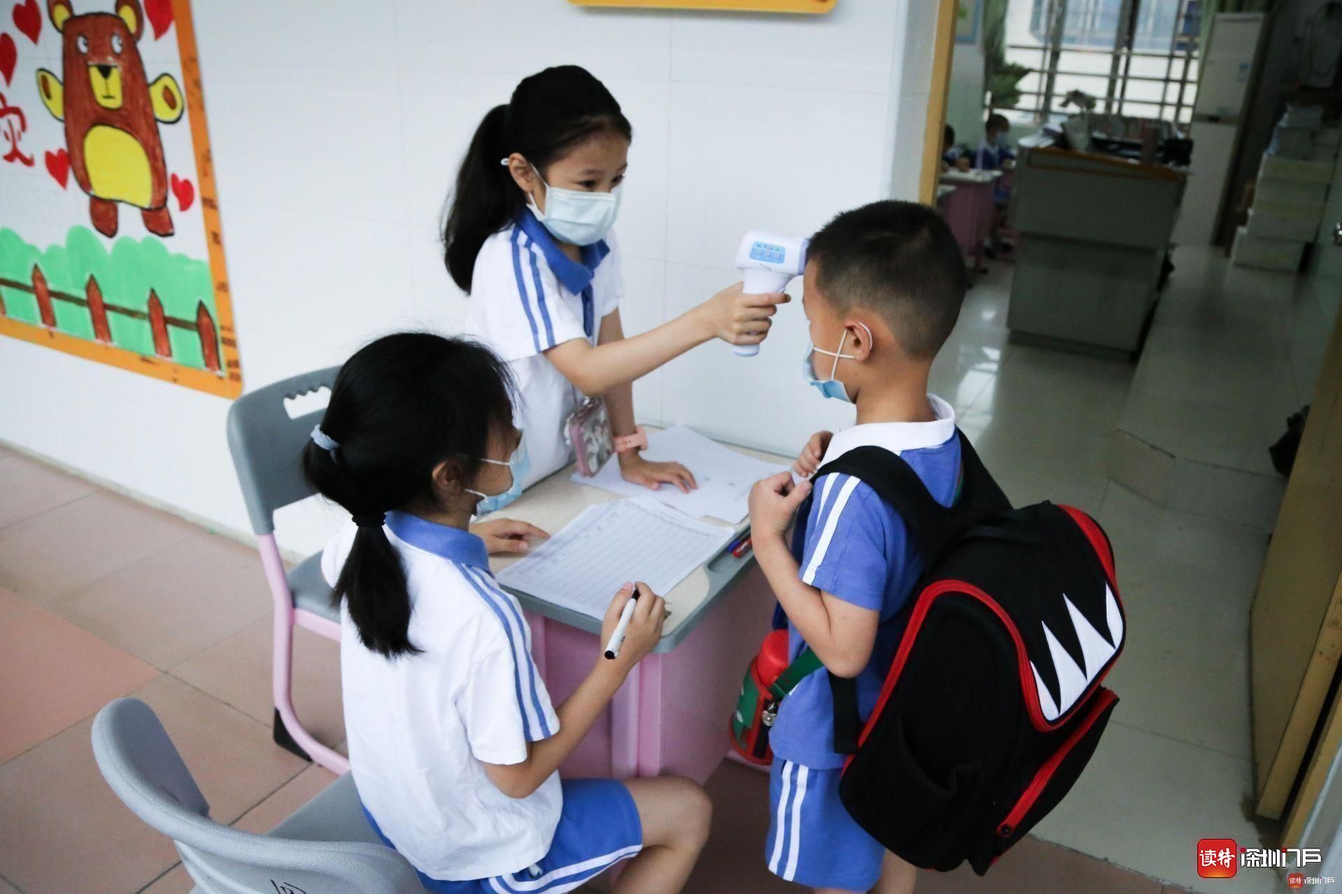 南師大附屬龍崗學校:小豆丁發(fā)揮大作用!小一學生協(xié)助老師完成第一天復學工作?!罢l說我們是小神獸?誰說第一天復學會手忙腳亂?”老師有了小助手們,一切愉快又順利啦!迎接同學進教室、隔著口罩認出同學問好表示歡迎、帶著同學找到座位、幫助老師測溫、領著同學晨讀進入學習狀態(tài)......防疫復學,一起努力?。ㄗx特記者李麗)