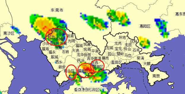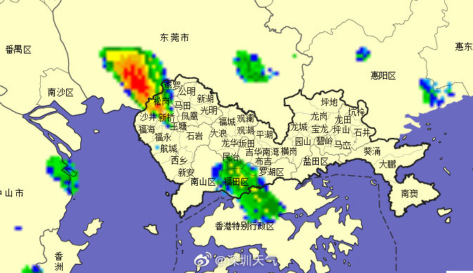 13時05分:目前我市寶安、南山、福田和羅湖局地有陣雨,中午外出吃飯的小伙伴,你們被雨追上了嗎?