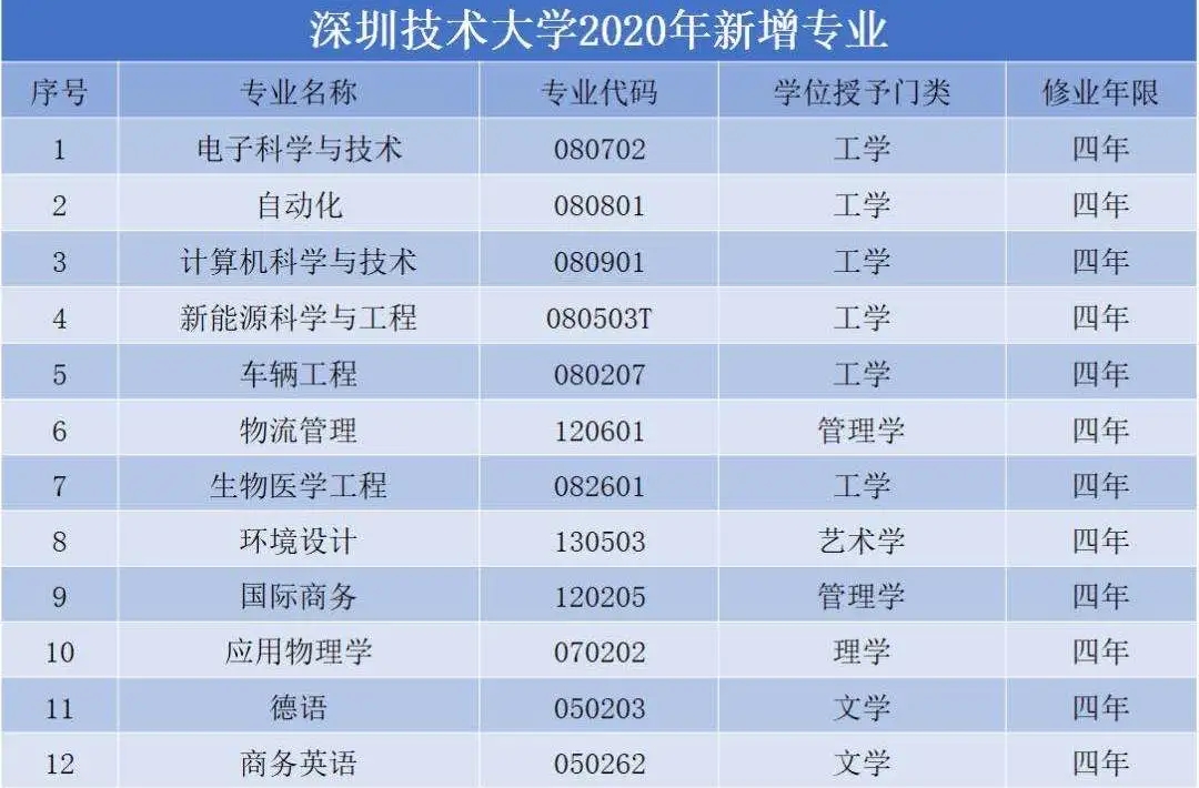 據(jù)教育部2019年本科專業(yè)備案和審批結(jié)果,在2019年機(jī)械設(shè)計制造及其自動化、物聯(lián)網(wǎng)工程、光源與照明、交通運(yùn)輸、汽車服務(wù)工程、工業(yè)設(shè)計等6個專業(yè)的基礎(chǔ)上,2020年,深圳技術(shù)大學(xué)將新增12個專業(yè),屆時招生專業(yè)將達(dá)18個。