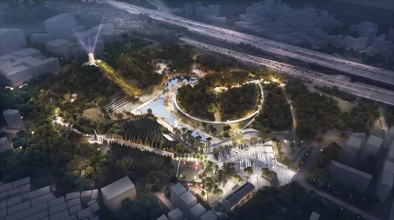 “民法環(huán)”以懸浮于現(xiàn)狀山體并融于山體的形象和環(huán)形空中廊道,結(jié)合沿途場(chǎng)地特色,分段展示了平等、自愿、公平、誠(chéng)實(shí)信用、綠色及公序良俗等民法6大基本原則,彰顯民法主題。行走于山林之間,感悟《民法》正氣,何樂不為?