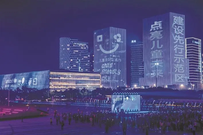 ▲2019年世界兒童日,深圳藍(lán)色燈光“點亮兒童未來”。