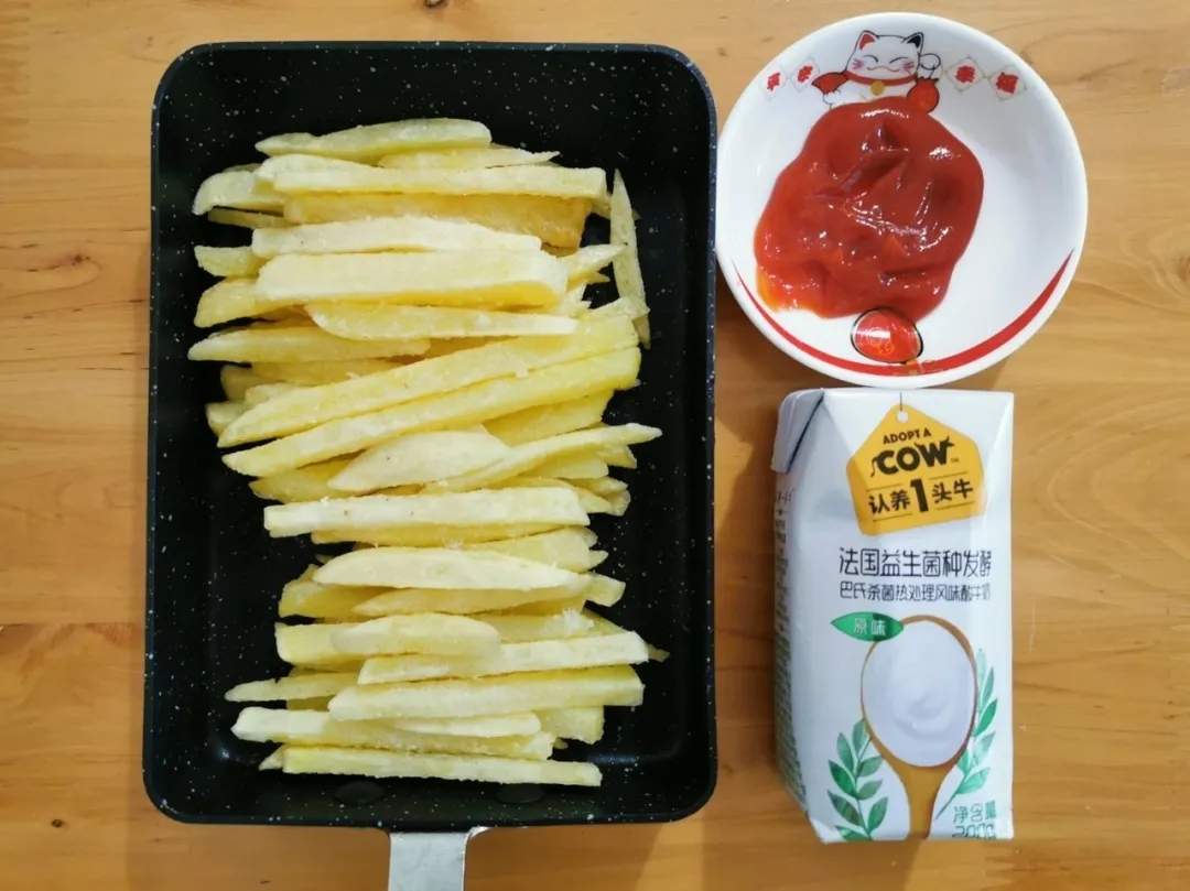 ▲小康最愛的零食是媽媽親自炸的薯?xiàng)l配番茄醬。