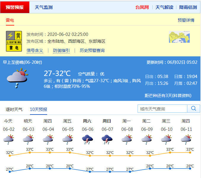 市氣象臺預測,3-4日有短時陣雨或雷陣雨,天氣悶熱。5-7日有陣雨或雷陣雨,部分時間雨勢較大。近期西南季風活躍,降雨局地性明顯,降雨較急,注意防范局地雷雨及其引發(fā)的水浸、地質(zhì)災害等次生災害。