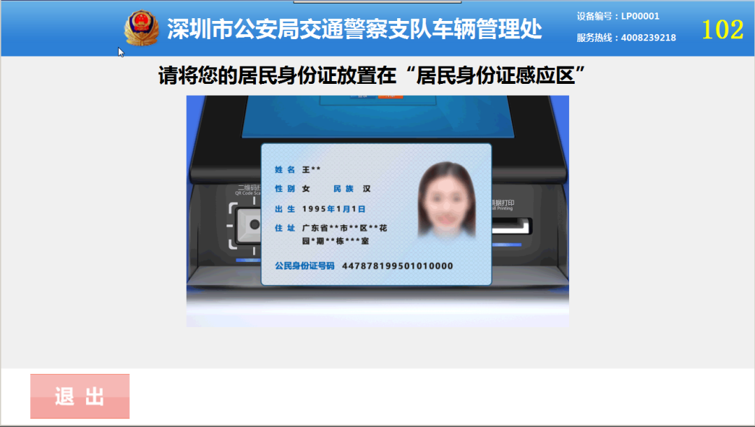 將身份證放置在讀取區(qū)內(nèi)進行身份證信息讀取;