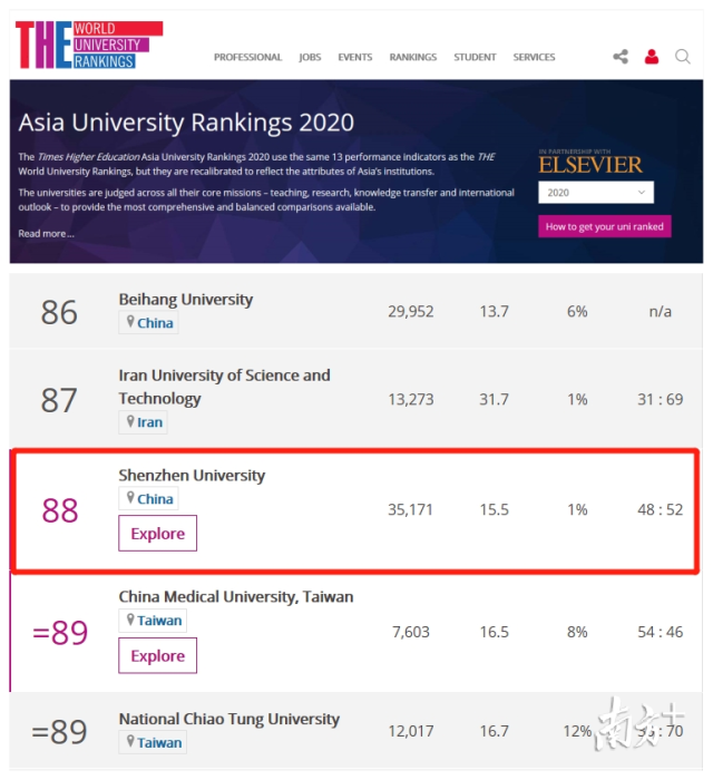 原標(biāo)題:泰晤士高等教育發(fā)布最新亞洲大學(xué)排名,深圳兩所高校表現(xiàn)亮眼