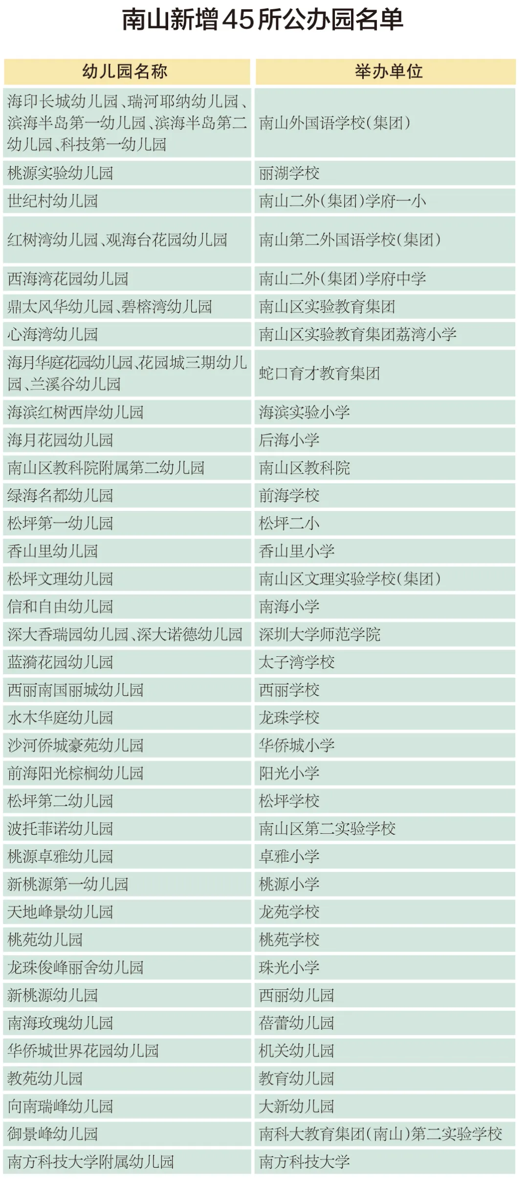 原標(biāo)題:重大利好!南山新增45所公辦園(附名單)