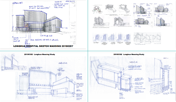 由于場地條件苛刻,設(shè)計難度高,項目設(shè)計團(tuán)隊從設(shè)計初期便全程引用BIM軟件,對場地關(guān)系、空間尺度、可實施性等方面均進(jìn)行強(qiáng)有力的把控,同時在立面關(guān)系、體塊穿插比例等方面,通過手繪草圖及實體模型等方式進(jìn)行精心推敲,從多維度對設(shè)計進(jìn)行把控。