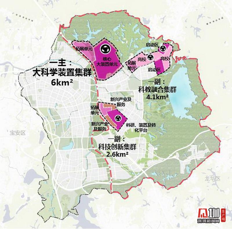2019年8月18日,國家發(fā)布了《中共中央國務(wù)院關(guān)于支持深圳建設(shè)中國特色社會主義先行示范區(qū)的意見》,提出以深圳為主陣地建設(shè)綜合性國家科學(xué)中心。市規(guī)劃和自然資源局地區(qū)規(guī)劃處副處長葉陽介紹,光明科學(xué)城北起深莞邊界,東部和南部以光明區(qū)轄區(qū)為界,西部以龍大高速和東長路為界,規(guī)劃總面積99平方公里,將構(gòu)建“一主兩副”的科學(xué)裝置集聚區(qū)空間布局。