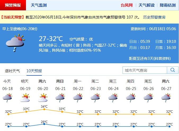 深圳未來(lái)3-4天天氣悶熱,午后易出現(xiàn)局地?zé)崂子?