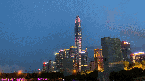 平安國(guó)際金融中心、京基100大廈、深圳漢國(guó)城市商業(yè)中心、深圳灣1號(hào)、中國(guó)華潤(rùn)大廈五座城市地標(biāo)的外立面上,同時(shí)亮起了絢麗的燈光。
