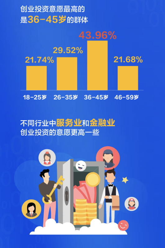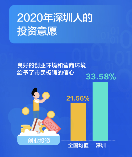 有了錢,深圳人會(huì)投資什么?大調(diào)查發(fā)現(xiàn),深圳人在創(chuàng)業(yè)投資的選擇占比高達(dá)33.58%,比全國平均水平要高出12個(gè)百分點(diǎn),良好的創(chuàng)業(yè)環(huán)境和營商環(huán)境給予了市民極強(qiáng)的信心。從不同年齡段來看,創(chuàng)業(yè)投資意愿最高的是36-45歲的群體,不同行業(yè)中,服務(wù)業(yè)和金融業(yè)創(chuàng)業(yè)投資的意愿更高一些。