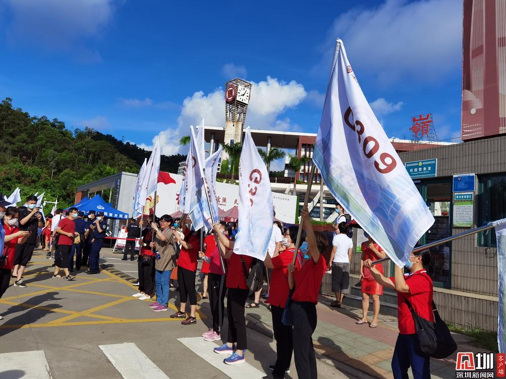 【深圳中學】身穿紅色旗袍的家長們預祝考生們旗開得勝。
