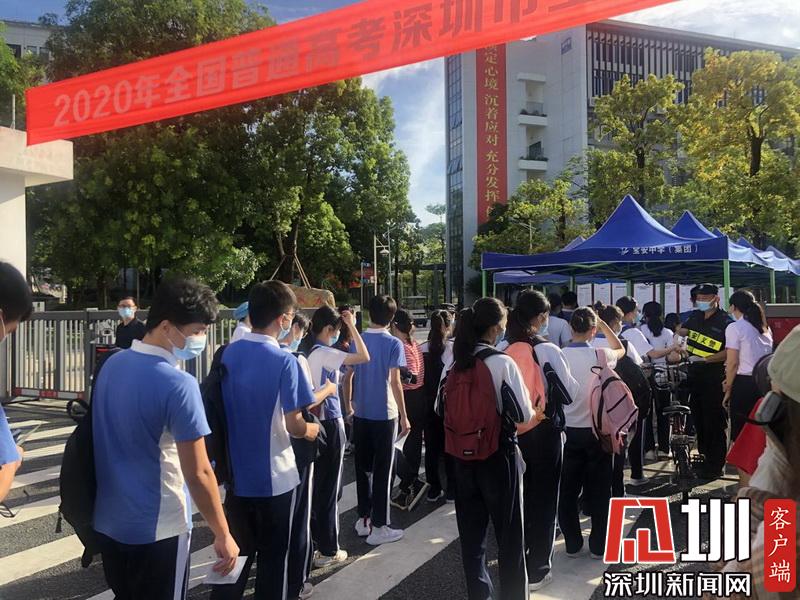 考生們有序排隊(duì),等待進(jìn)入考場。
