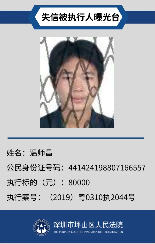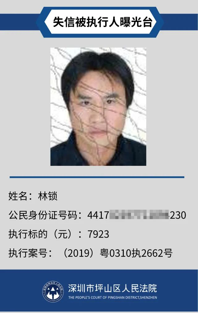 為督促被執(zhí)行人自覺(jué)履行生效法律文書(shū)確定的義務(wù),推進(jìn)社會(huì)誠(chéng)信體系建設(shè),深圳市坪山區(qū)人民法院根據(jù)《中華人民共和國(guó)民事訴訟法》第二百五十五條、《最高人民法院公布失信被執(zhí)行人名單信息若干規(guī)定》第一條和第七條之規(guī)定,現(xiàn)對(duì)31名失信被執(zhí)行人予以公布。名單信息根據(jù)案件結(jié)案情況及時(shí)更新,歡迎舉報(bào)失信被執(zhí)行人行蹤及財(cái)產(chǎn)線(xiàn)索,相關(guān)信息核實(shí)請(qǐng)聯(lián)系深圳市坪山區(qū)人民法院執(zhí)行局。